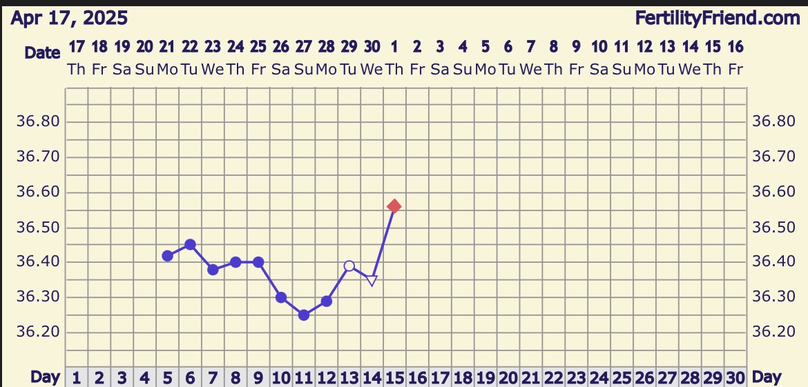 Var det jeg og tenkte, men får det ikke til å stemme med tempen som har vært så rar denne syklusen. Aldri hatt så lave temperaturer før.