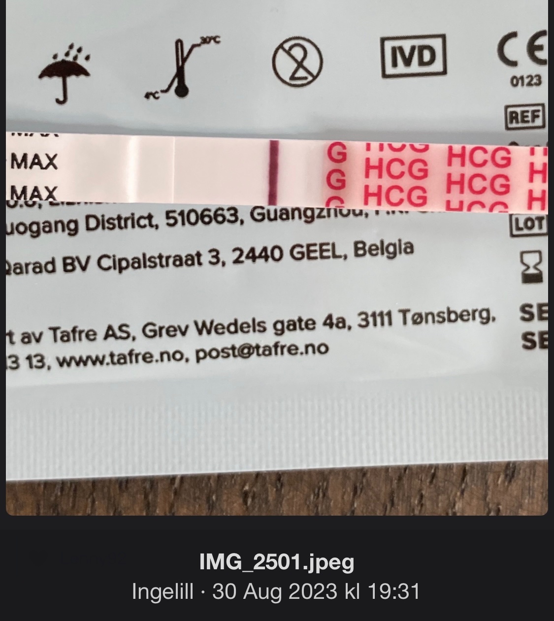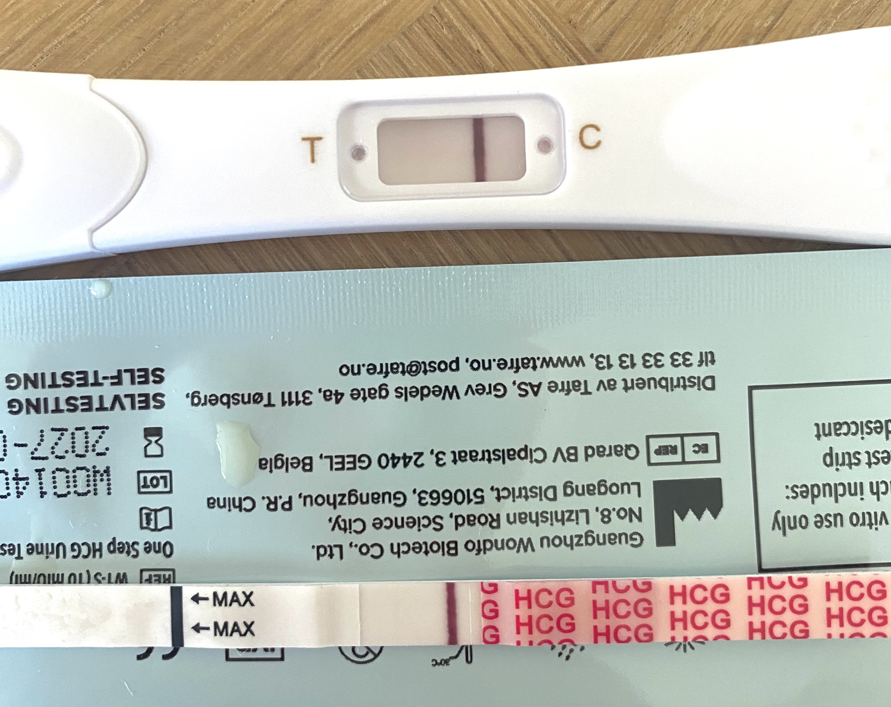 Jeeeg skulle ikke teste før 9 dpo hadde jeg tenkt. Meeen i går 6 dpo gikk den planen i vasken. 6 dpo??? Hva tror jeg. Og det ble litt wild ride. For plutselig syns jeg at det var en strek på den. Men streken forsvant da testen var helt tørr, så da trodde jeg at jeg klarte å slå meg til ro med at det var skygge, og at nå må jeg vente til torsdag. NEIDA jeg bare måtte teste på kvelden igjen for å se om det ble skygge igjen. Og da det kom en ganske tydelig strek raskt fikk jeg sjokk, og det tok sikkert over et minutt før jeg skjønte at det var en eggløsningstest! Heeerlighet. Graviditetstest var negativ, og det var den også i dag (hvorfor testet jeg i dag også??). Jaja jeg må bare innse jeg er testgal og stå i det. Blir vel en test i morgen også daa. Bildet er første testen i går, men ikke sikkert det er mulig å se noe på bildet, uuansett ingen babystrek.