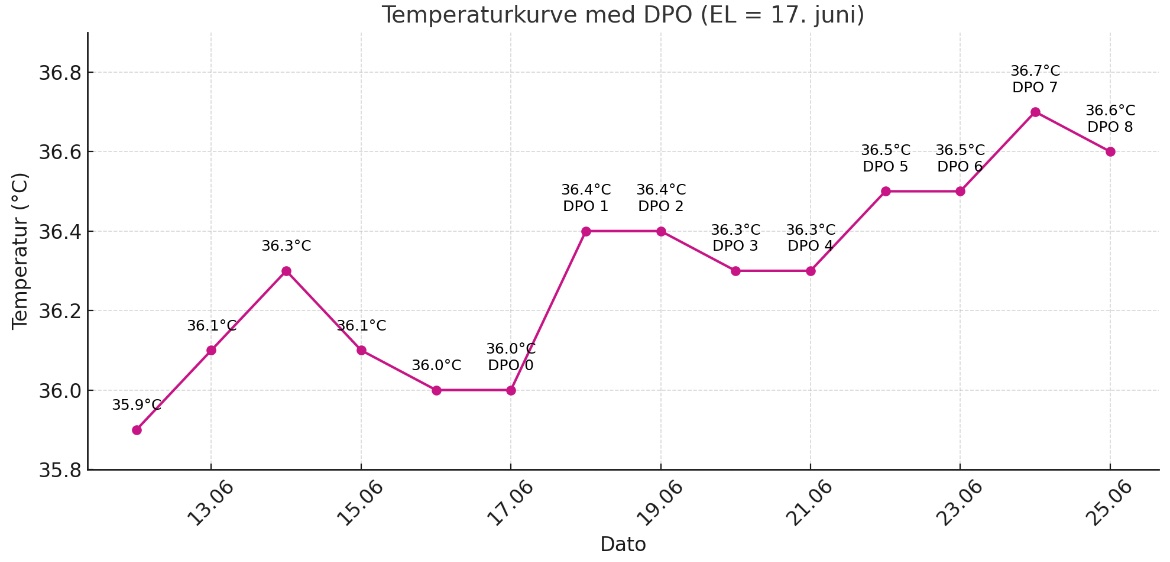 Sniker. Jeg ble syk på 1 eller 2 DPO når jeg var prøver sist. Hadde influensa i to og en halv uke og tempen var selvfølgelig ikke til å stole på. Det ble terminspire det, for er i uke 32 nå :love017