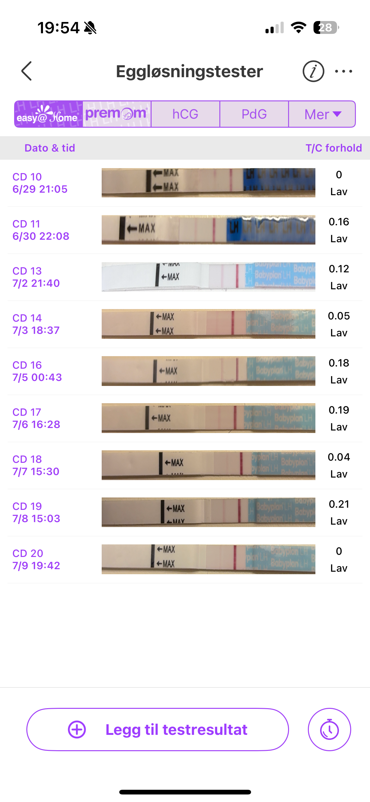 Hei! jeg fikk tips om og prøve meg i denne gruppen også siden det er litt mer aktivitet her og jeg sårt trenger andres meninger! haha…Jeg er litt usikker på når jeg hadde eggløsning men jeg startet forrige mens 20 Juni, jeg tok hvertfall en graviditetstest på Tirsdag og den var negativ..testet igjen Onsdag morgen og den var svakt positiv, jeg ble helt overlykkelig!! Når torsdagen kom tok jeg enda en ny test på morgenurin, og da var den negativ?dukket opp en svak strek etter tiden. Måtte såklart ta enda en ny på morgnen igår, og den var igjen svakt positiv…Idag tok jeg 2 på morgenurin og den ene hadde svak strek før tiden, mens på den andre kom det en strek etter tiden..på de andre «positive» har streken også dukket opp før tiden og dem har farge, dem er svake men jeg ser dem…Jeg har brukt Makesure sine tidlig tester, har lest mye erfaringer om disse men er det så stor variasjon i dem? Jeg begynte og småblø på søndag som holdt på frem til tirsdagen, samme dag som første test..har kjent på småkvalme av og på iløpet av dagen de siste dagene, men vet ikke hva jeg skal tro lenger? tok CBD igår, den sa negativ. Snakket med legen igår og han fikk det ikke helt til og stemme overens med at det var en kjemisk..har tatt blodprøver og fått beskjed om og vente til neste uke på svar, men det er ikke så lett akkurat