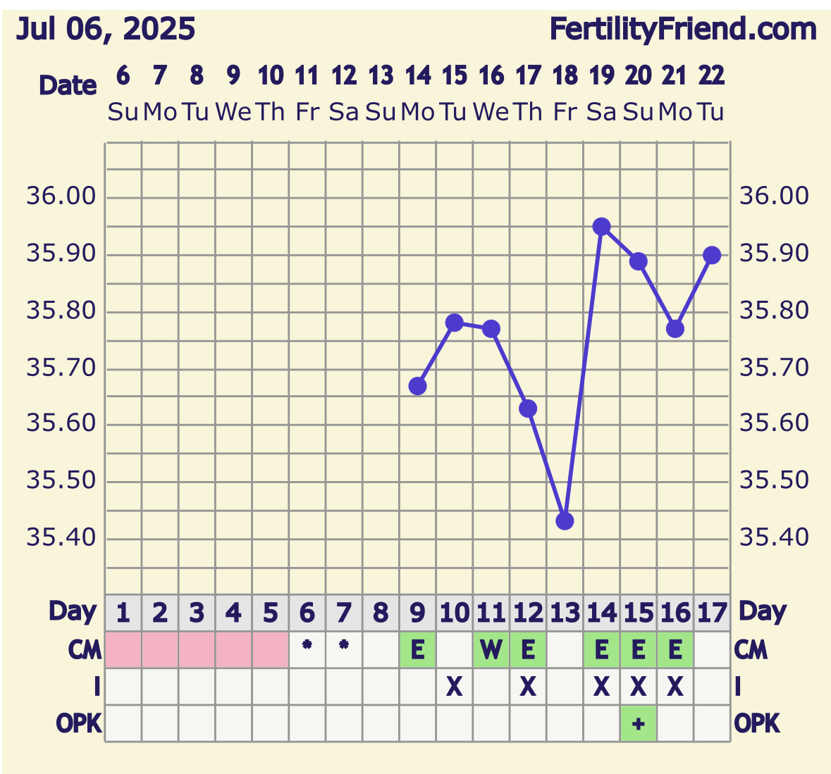 Jeg syntes det virket som så mye styr med temping at det skulle jeg iallefall ikke begynne med, men er så glad for at jeg fikk hjelp her inne til å forstå hvor greit det er å følge med på temp når man Trying To Conceive