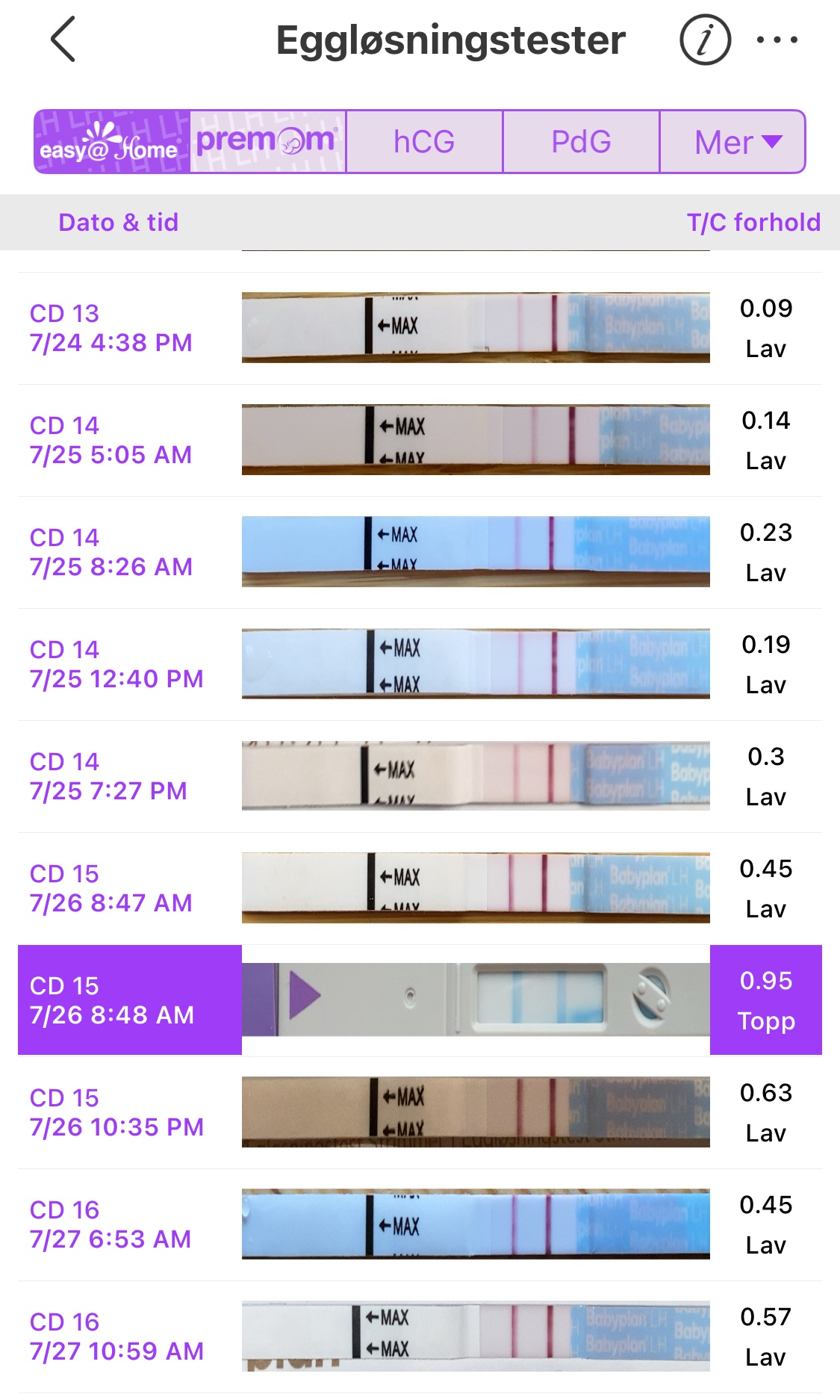 Denne PP har vært ulik de forrige; fordi først kjente jeg vonde el-smerter på venstre side CD15 fra kl. 20.00-20.15, og CD16 veldig vonde el-smerter på høyre side fra kl.21.00-22.30. Kjenner omtrent aldri EL fra høyre eggstokk?