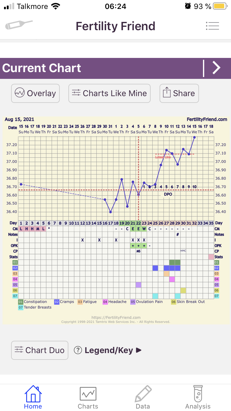 Neida,men kjenner at jeg har mista litt troa på denne runden. Er jo bare 8-9 dpo så enda tidlig, men vet ikke. Føler det bare ikke