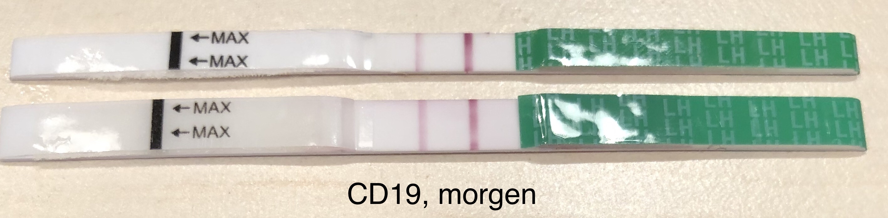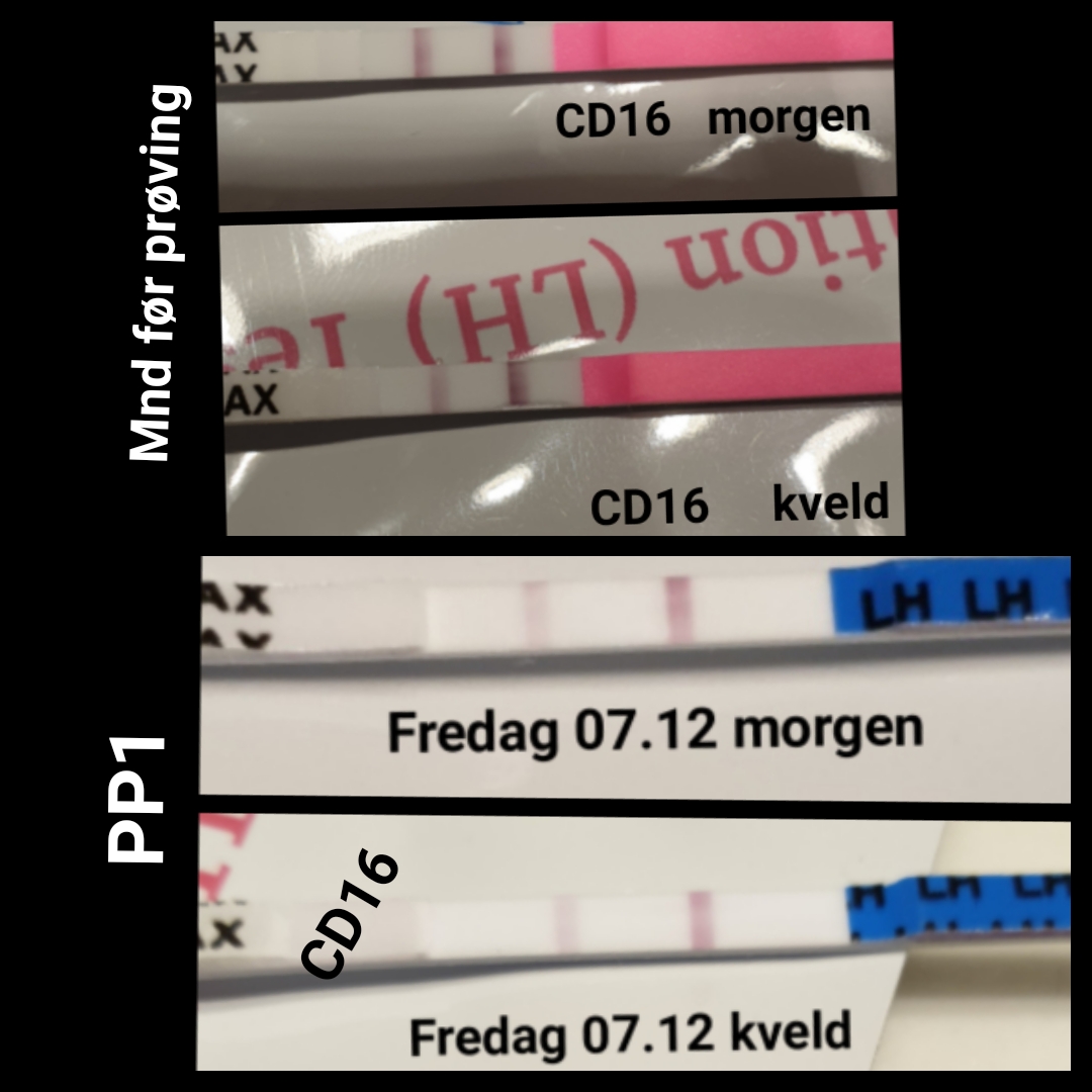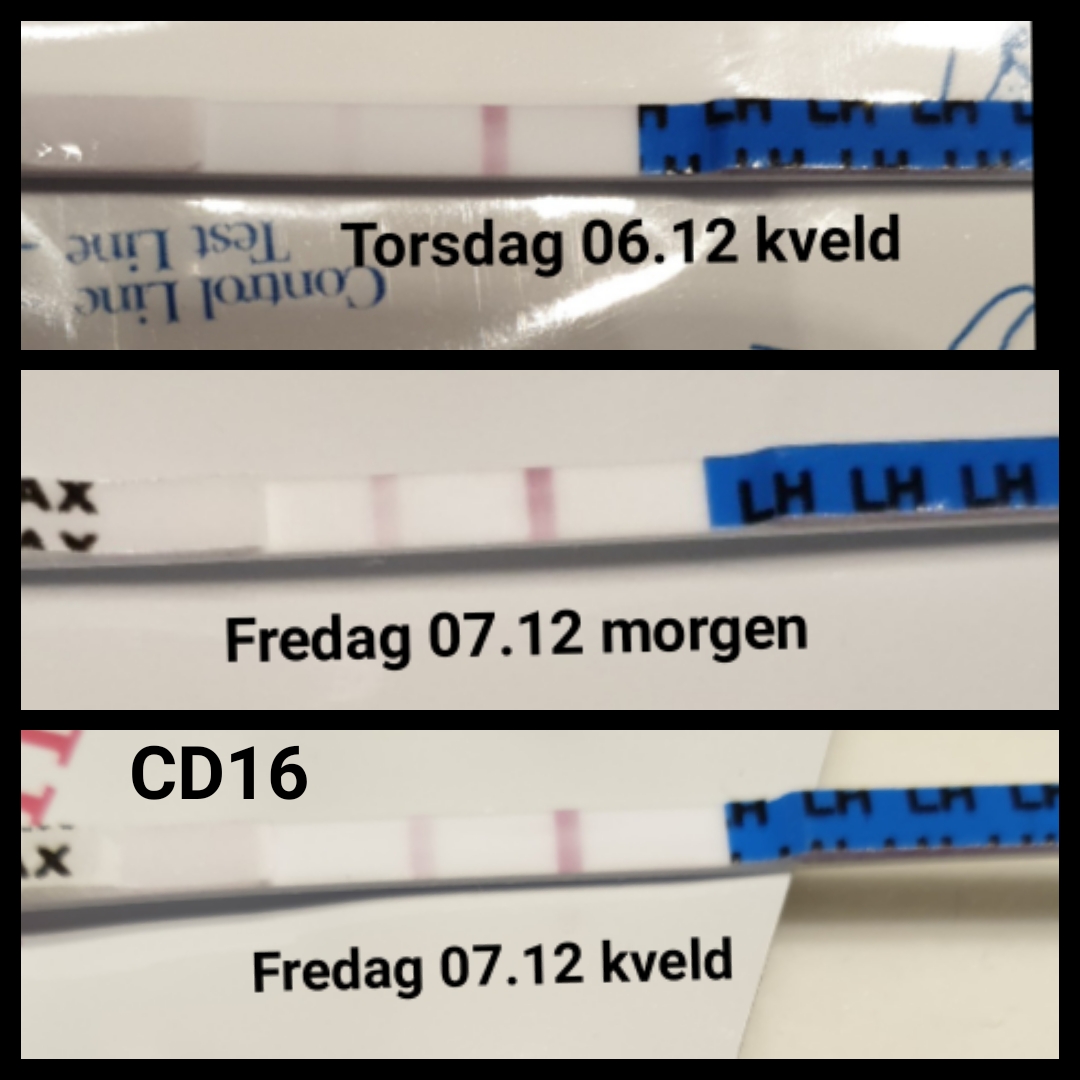 Tror EL er rundt hjørnet nå Jeg bruker bare wish/ebay tester, for jeg prøver å være litt avslappet til prøvingen for å unngå å stresse. Forje mnd så brukte jeg en sending med rosa tester og da ble begge strekene like rosa, før de ble negative. Nå er de litt svakere, så enten er EL i morgen eller søndag, eller så er denne testen annerledes. MEN jeg tror jeg nærmer meg EL