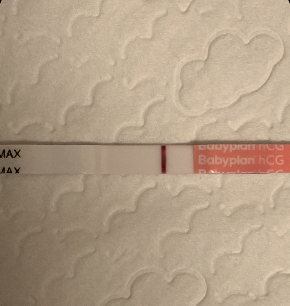 Dagens strek. Ca 11 dpo. Mye sterkere enn i går og innenfor tidsfristen, men litt blod i dag også, så tror vel dette er over før det har begynt