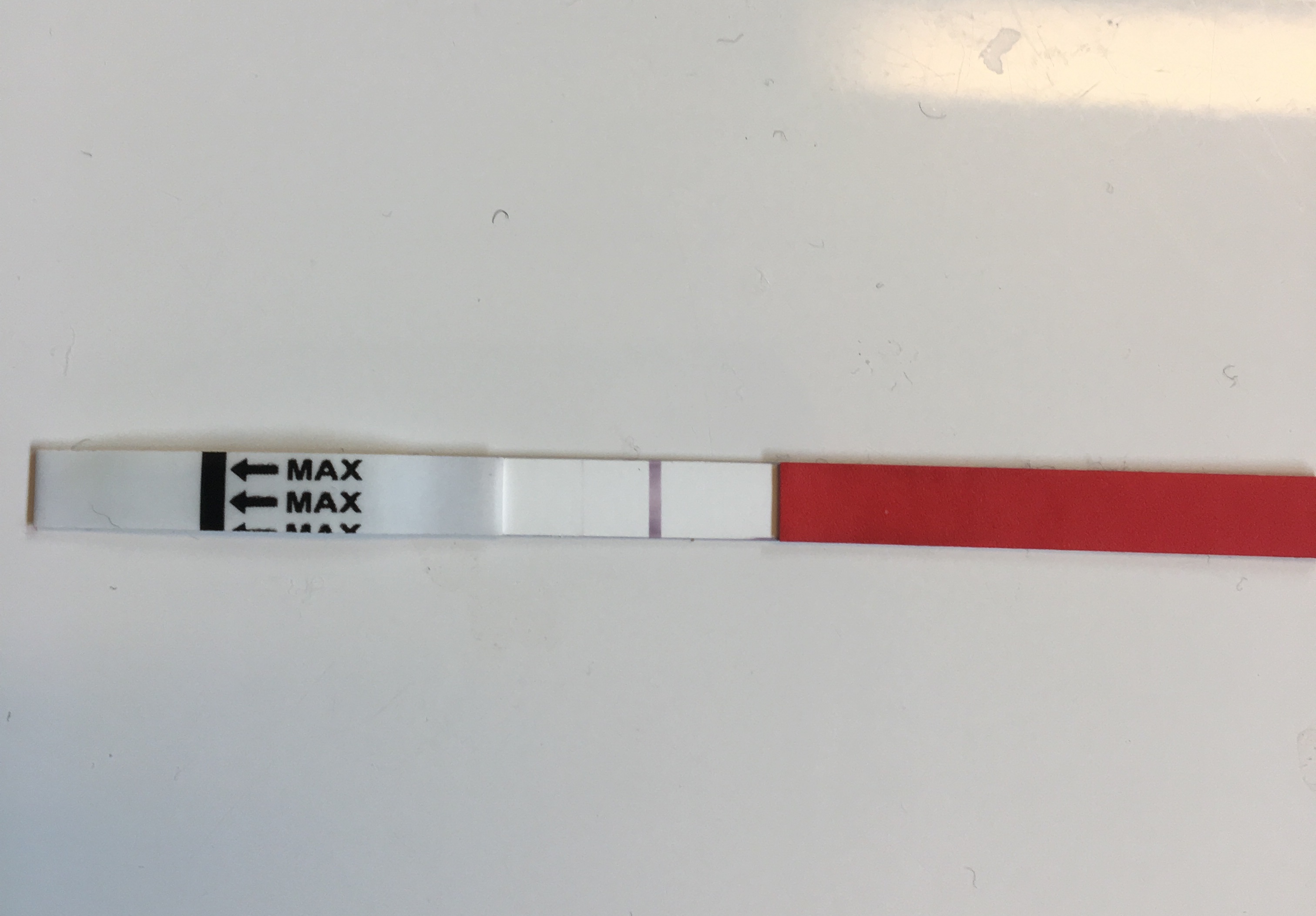 Prøv å blande ut urinen din med 1/4 urin og 3/4 vann og ta en ny test. :) Kan være du har for høy hcg for testen.