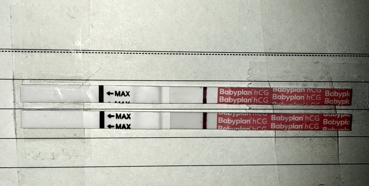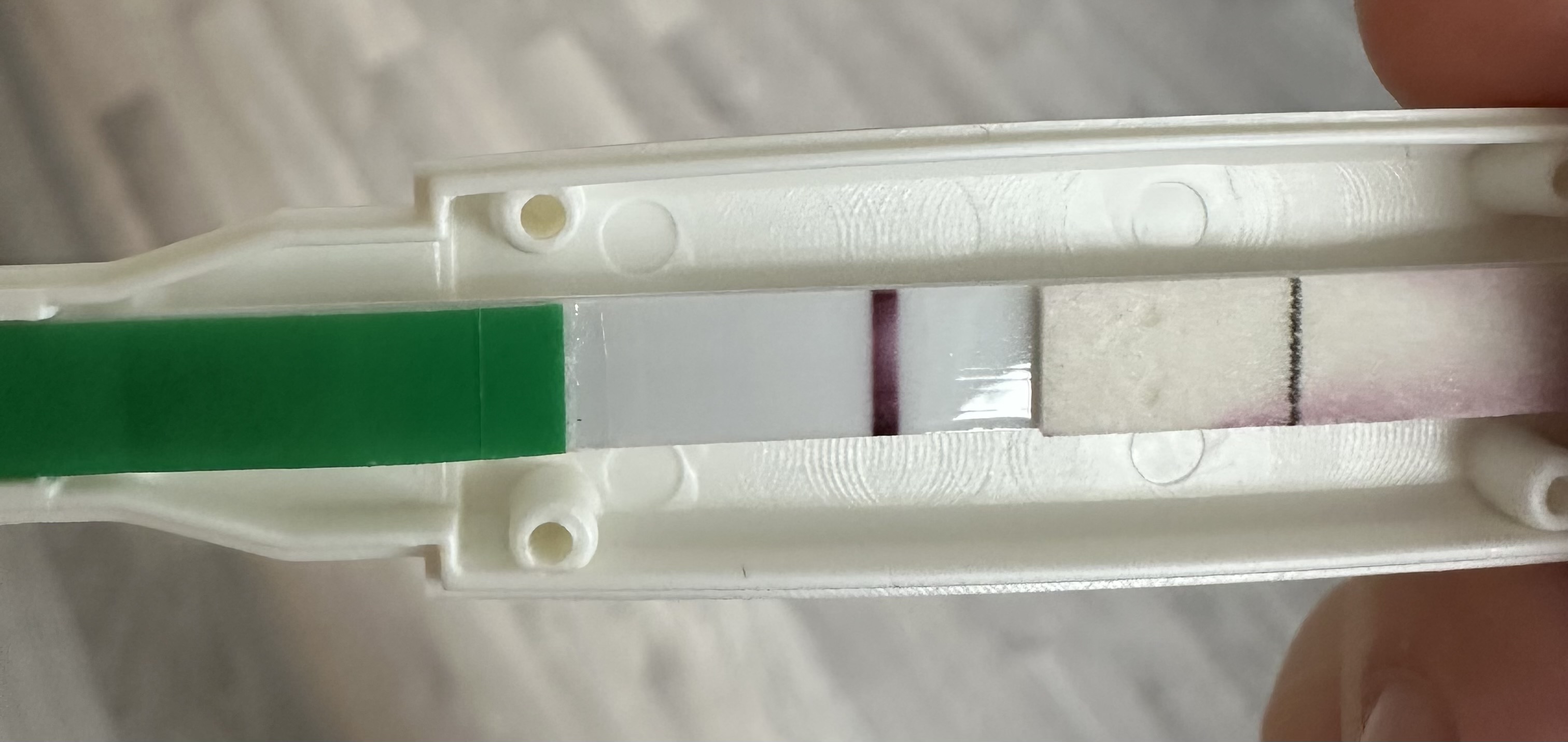Spotter fremdeles rosa og har murringer nede i magen og i korsryggen. Spent på dette her nå :nailbiting: Testene jeg tok var på relativt utvanna ettermiddagsurin. Spent på om det synes bedre i morgen tidlig (hvis det er noe der) :nailbiting: