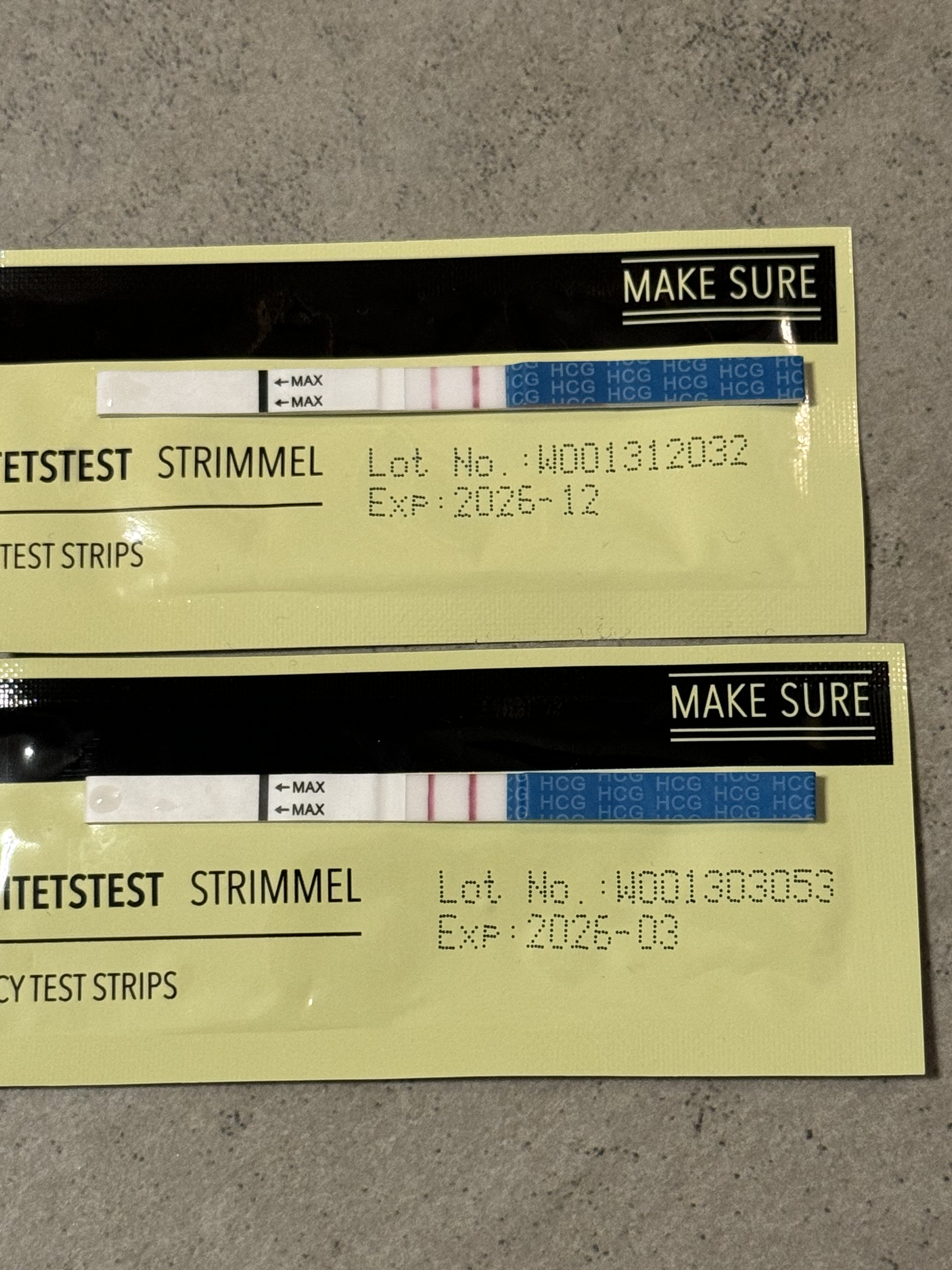 Wow!!! For en forskjellJeg fikk panikk i kveld og dro på butikken. Fant en gammel batch (også mye omtalt på forumet her som dårlig, men det var den jeg brukte forrige graviditet). Det burde vært ulovlig å ha så stor forskjell på samme urin.Min pakke med 1312032 er i alle fall bare å kaste. Tester med 053 fremover!