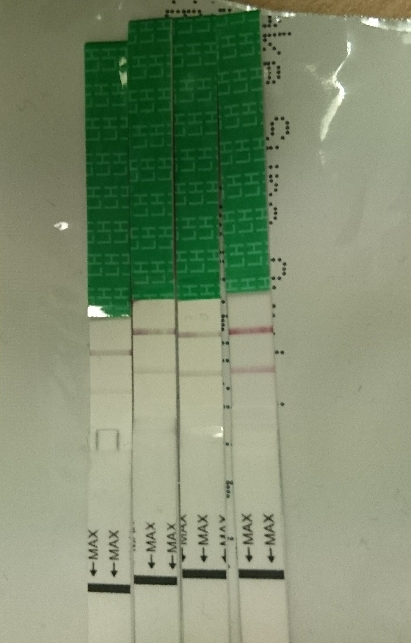 Jeg har tydeligvis ett egg som ikke vil gi helt slipp. Hadde relativt sterke tester, så ble de svakere også nå sterkere igjen. Får håpe det slipper snart[emoji1][emoji120]