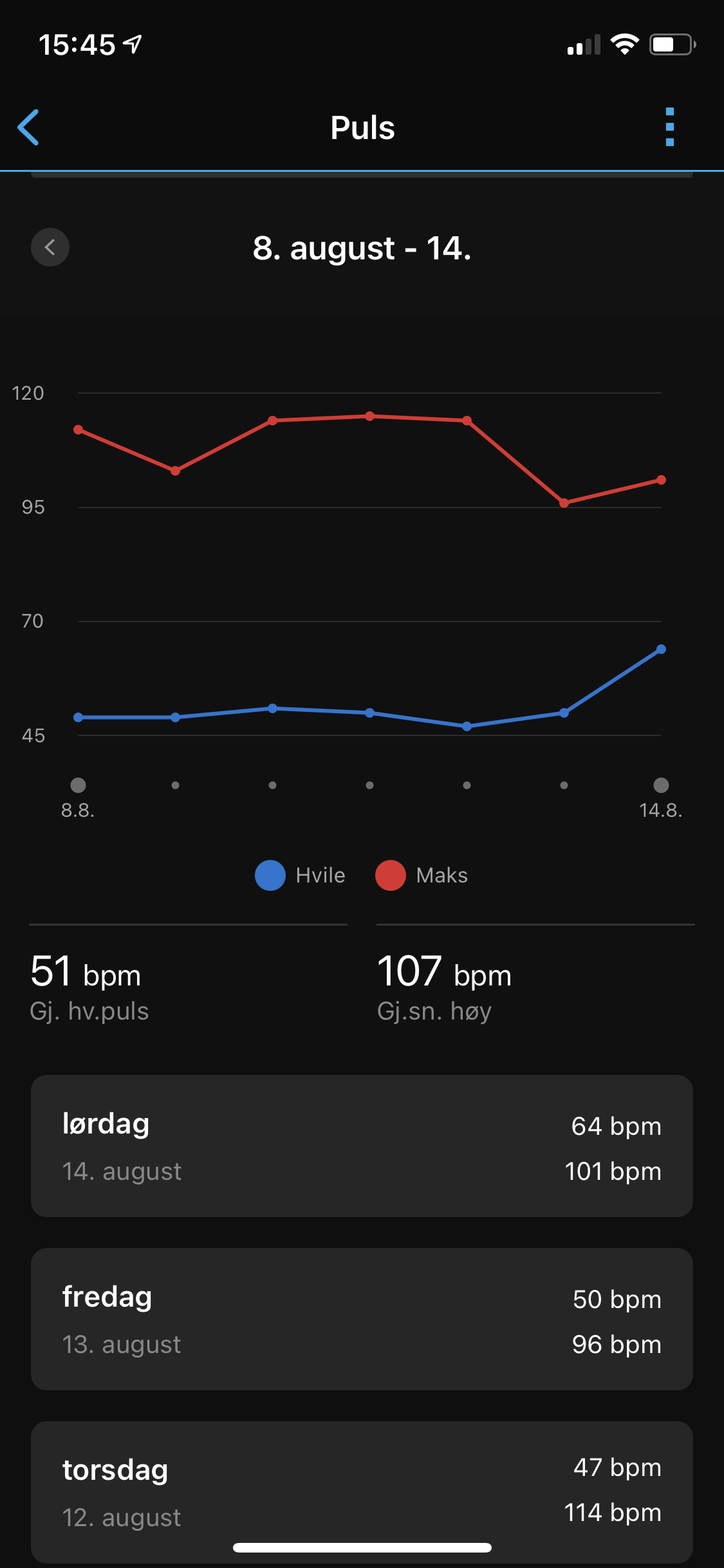 Høy hvilepuls, ett ganske typisk graviditetstegn på meg, men nå er jeg syk og 9dpo, så usikker på om hvilepulsen er høy pga svangerskap eller sykdom :hungry: