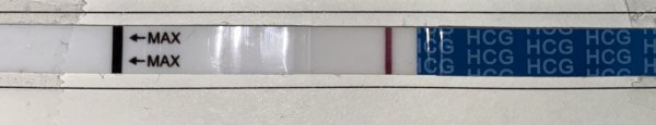 9 dpo morgenurin. De to øverste er urin den nederste er dyppet i vann (stoler ikke på one step). Er jo "noe" på de to testene men har fortsatt is i magen etter kjemisk forrige pp![]()