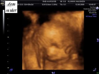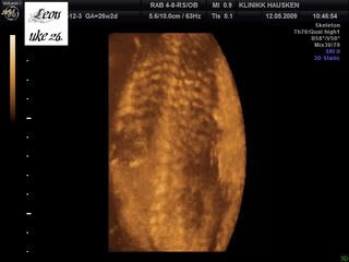 Ja, i dag er jeg akkurat 26 uker, noe som også betyr at jeg er under den magiske 100-dagers grensen[:D] Bare 98 dager til lillegutten vår kommer; for ja, det var fortsatt en gutt når vi var på 3D i dag[;)]