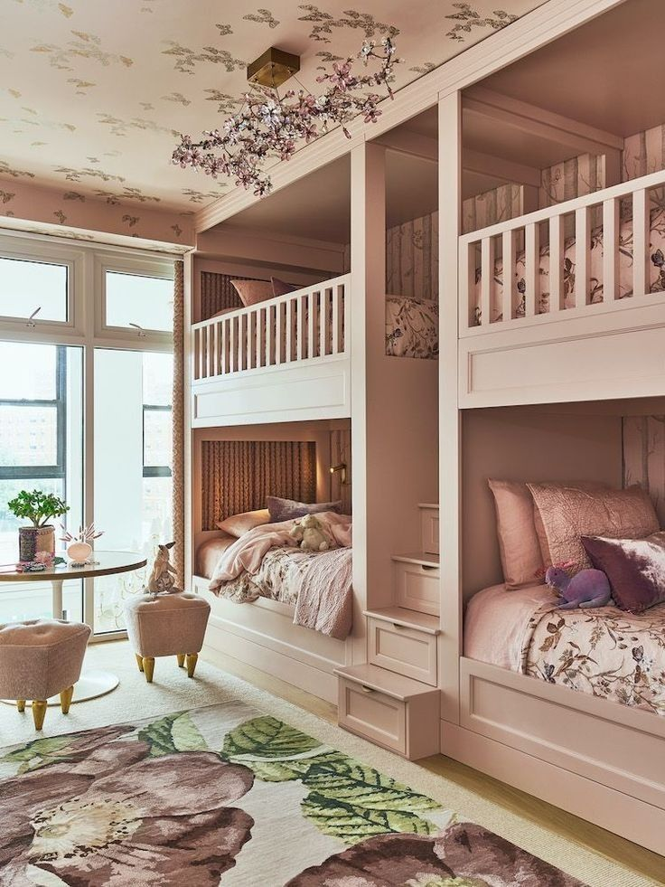 Innebygde senger, køyesenger og senger ved siden av hverandre kan være fine løsninger, alt etter hva romstørrelsen tillater. Her er mulighetene mange, og det klør litt i fingrene for min del å få lov til å planlegge sånne morsomme prosjekter. Mannen har allerede bygget en montessori-gulvseng nå, som rommer 2-3 unger mens de er små.