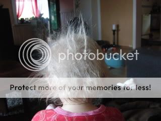 Linnea ser ut som et kråkereir i bakhuet hele tiden. Må jo le litt av det og haha...ser ut som det lykketrollet.