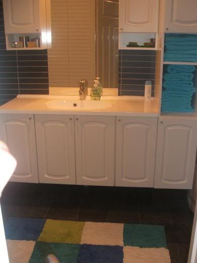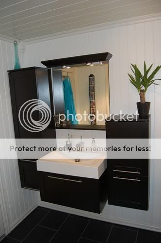 Maritmor jeg syntes baderomsinnredninga di var så fin, synd vi ikke har plass til en sånn en her. Så så kjekt ut med masse skap og skuffer.