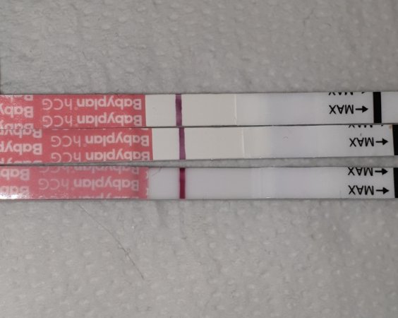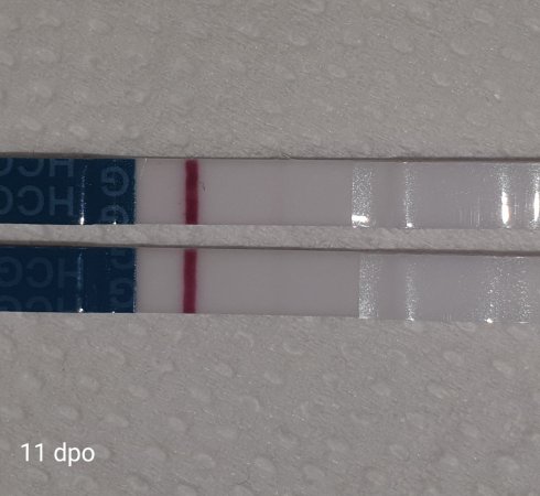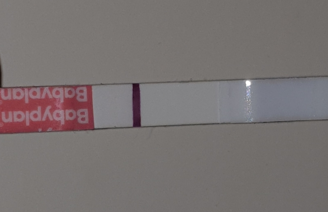 I går var jeg sint på meg selv for at jeg ikke bare kunne slutte å teste, men våkner allikevel i dag tidlig å følger rutinen med å ta tester, til tross for å ha forsovet meg og ikke har tid til å hverken våkne sikkelig eller vente på tester. I mitt trøtte øyeblikk bestemmer jeg meg for at 10 dpo betyr at jeg kunne jo bare prøve en CB+ for å sjekke, og jeg presiserer med å dyppe den ALT for lenge. Ikke med bare litt heller.. så joda jeg så streken jeg, men jeg så også en skikkelig klatt med fargestoff spre seg over hele greia. Jeg tok en babyplan tidlig på same urin, og den negative testen blandet med trøtte og hormonelle meg blir forbannet som fy og tenker "fuck it" jeg gidder ikke å teste mer, jeg kan bare bruke de opp, så MÅ jeg vente uansett.. selvfølgelig etterfulgt av å teste med en vanlig strips fra Normal. Negativ igjen.