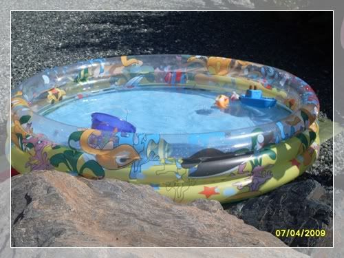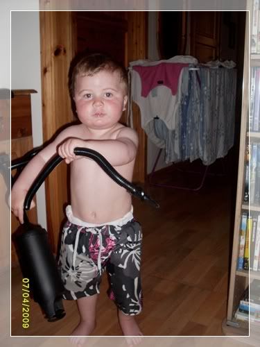 Legger ut noen bilder av Markus jeg [:)] Uansett om han ikke hører til dette forumet [;)] Men er jo sønnen min da [:)] Klar til å pompe opp bassenge sitt [;)] Der var bassenge klart [:)] Kosa seg der ja [:D]