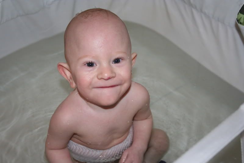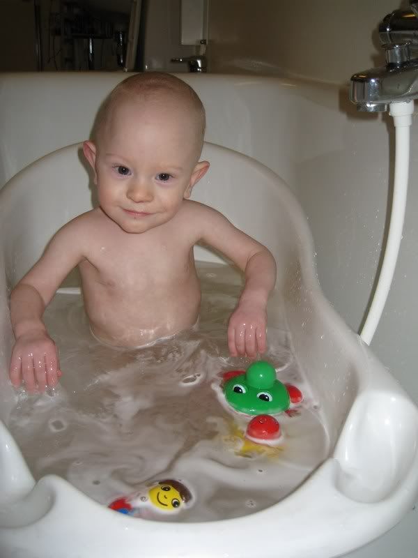 Her er vi hjemme i badekaret. Er han ikke søt?!