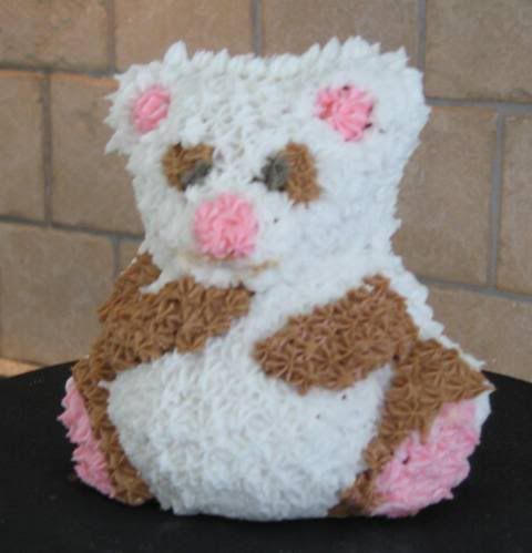 Ja, da jeg snuppa fått pynta bamsen. Med litt hjelp fra mor [;)][:D] Og så måtte jeg lage noen figurer som jeg skal ha på kake til sønnen min og nevøen min. De skal nemlig feire sammen [:D]