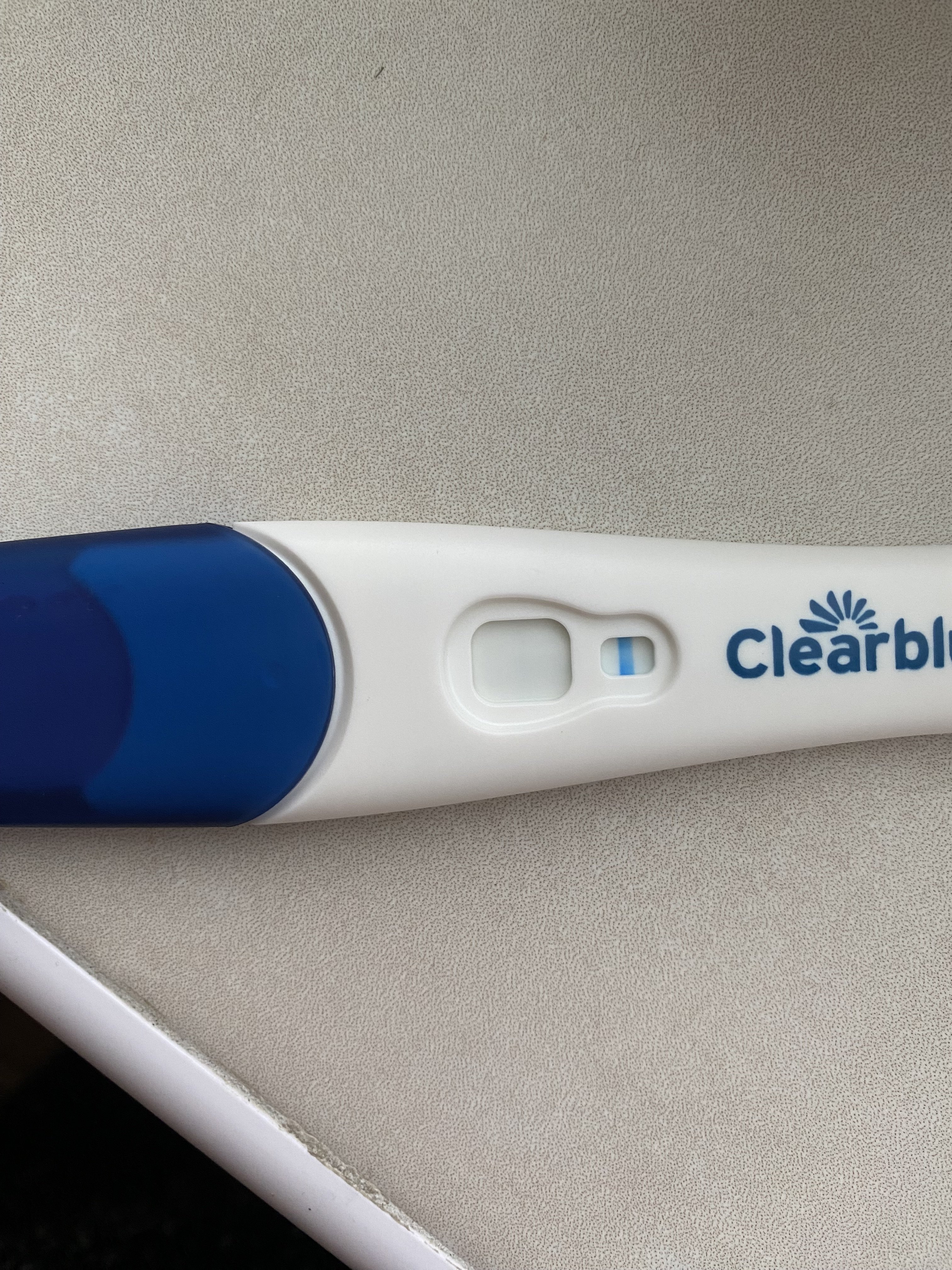 Noen som har erfaring med falske positive fra Clear Blue Early Detection? Jeg fikk en svaak strek i morges som var blå og som også min samboer kunne se. Teststreken var llike tjukk som kontrollstreken. Jeg tok ikke bilde da jeg tok den, men når jeg kom hjem fra jobb så testen slik ut (se bilde).