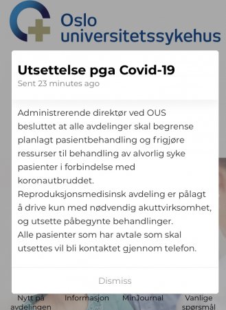 Info fra appen til Oslo Universitetssykehus: