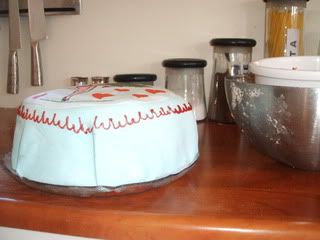 Kaken fra siden, ved siden av min aller største bakebolle.. For sammenligning[8D]