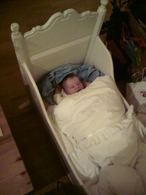 her er d svigerfar som har snekret sammen en kjempe fin vugge=)