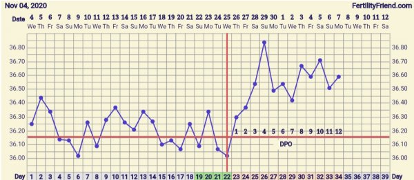Tempen gikk opp igjen idag, men håper mensen ikke er for langt unna. 12 eller 13 dpoMens skal komme onsdag eller torsdag(håper før