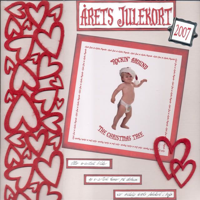 Stilig julekort LO [:)] Syns det var kjempetøft med den borden med filthjerter. Gjennomført stil og flott oppsett [;)]