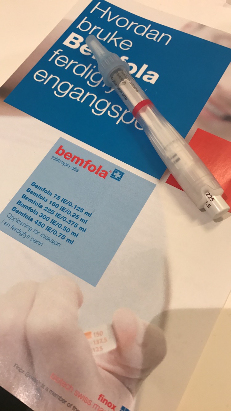 Jeg fikk tanta på besøk idag. Begynner på bemfola imorgen på syklusdag 2. Skal gå på den alene til syklusdag 6, da begynner jeg på orgalutran.. Skal gå på begge disse frem til syklusdag 10 eller 11 (står 11 i doseringsskjema fra Spiren).. Har UL/kontroll på syklusdag 10.. Håper alt går som det skal så jeg kan sette ovitrelle.. Foreløbig plan er egguttak iløpet av begynnelsen av oktober.