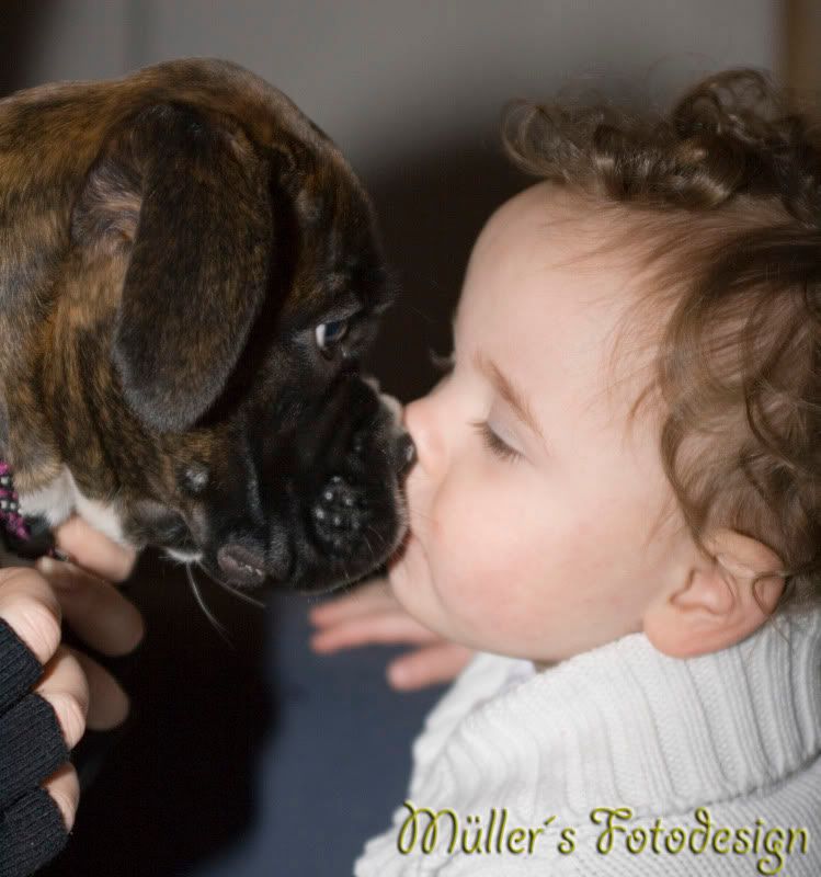 Huff, jeg liker ikke når hunder er oppi ansiktet til unger... Æsj...