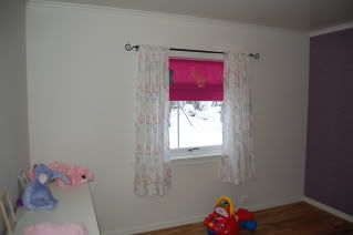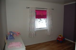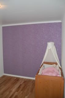 Nå har hun ikke fått eget rom enda.. Men skal ha en fin lys grønn farge og rosa/lilla møbler.