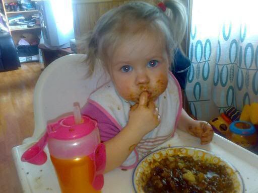 Ser ut som hun koser seg med middagen sin. [:)]