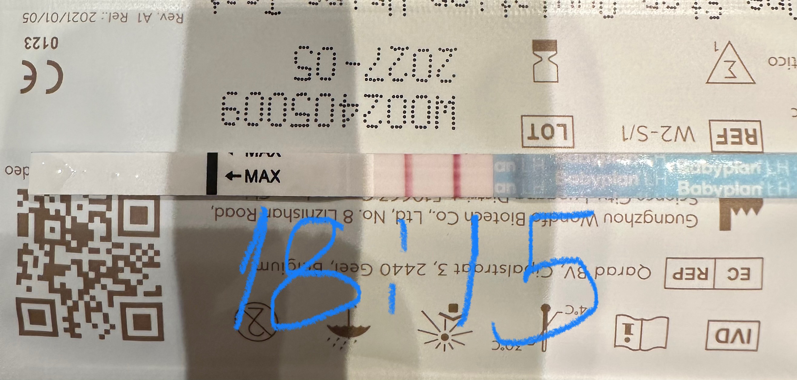 Ser ut til at testen er negativ i dag, men jeg fortsetter å teste utover dagen i tilfelle den svinger opp igjen. Ingen temphopp, men den er på en "stigende trend" så nå er jeg spent på å se om det kommer et kryss :nailbiting: