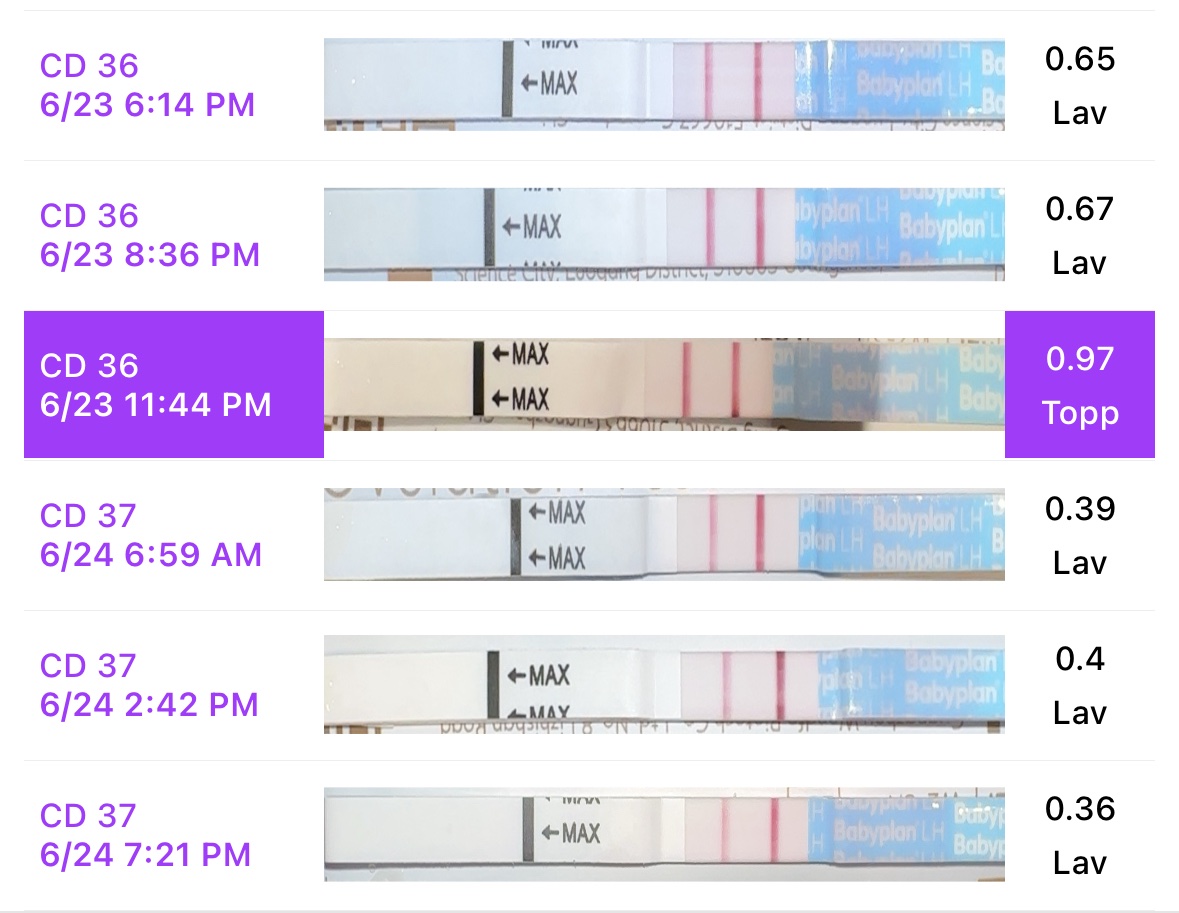 Jeg har ikke tempet eller testet på lørdag eller søndag siden vi var bortreist og jeg har delt seng med mini. Tempet igjen i dag morges og tempen ser ut til å fortsatt være lav, så om det er noe på gang, har det forhåpentligvis ikke skjedd enda. Skal prøve å ikke legge for mye i disse "tegnene", men jeg skal helt klart ta en el-test når jeg kommer hjem. Gj;r mitt beste nå på å mentalt forberede meg på at det kanskje ikke blir positiv test, tror det er lurt å være edruelig i håpet så jeg ikke blir altofr skuffet om det ikke blir noen avklaring.
