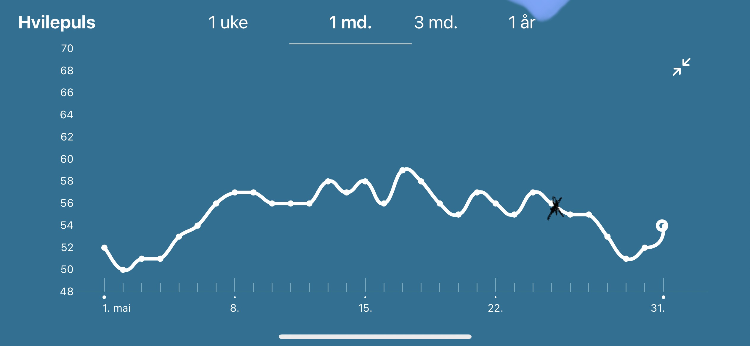 Hvilken app bruker du? Syns applewatch sin er så teitHer er mine grafer, første er mnd før jeg ble gravid x av på IKM hvor pulsen ikke går så veldig høyt opp. På andre er mnd jeg ble gravid, EL 8, egget Festet seg mest sannynelig 8-9 dpo og IKM 22. ser en veldig stor forandring på gravid og ikke Vis vedlegget 390357Vis vedlegget 390358