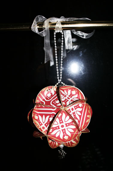 Den består av 20 sirkler, som jeg har preget sånn at det er en likesidet trekant inni, og så limer man brettekantene mot hverandre. [:)]