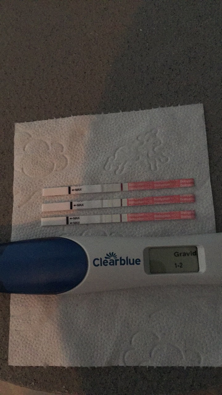 Negativ g-test.CD36 og fortsatt ikke mensen. Aner ikke hvor mange dpo siden alle ti EL-testene var negative.