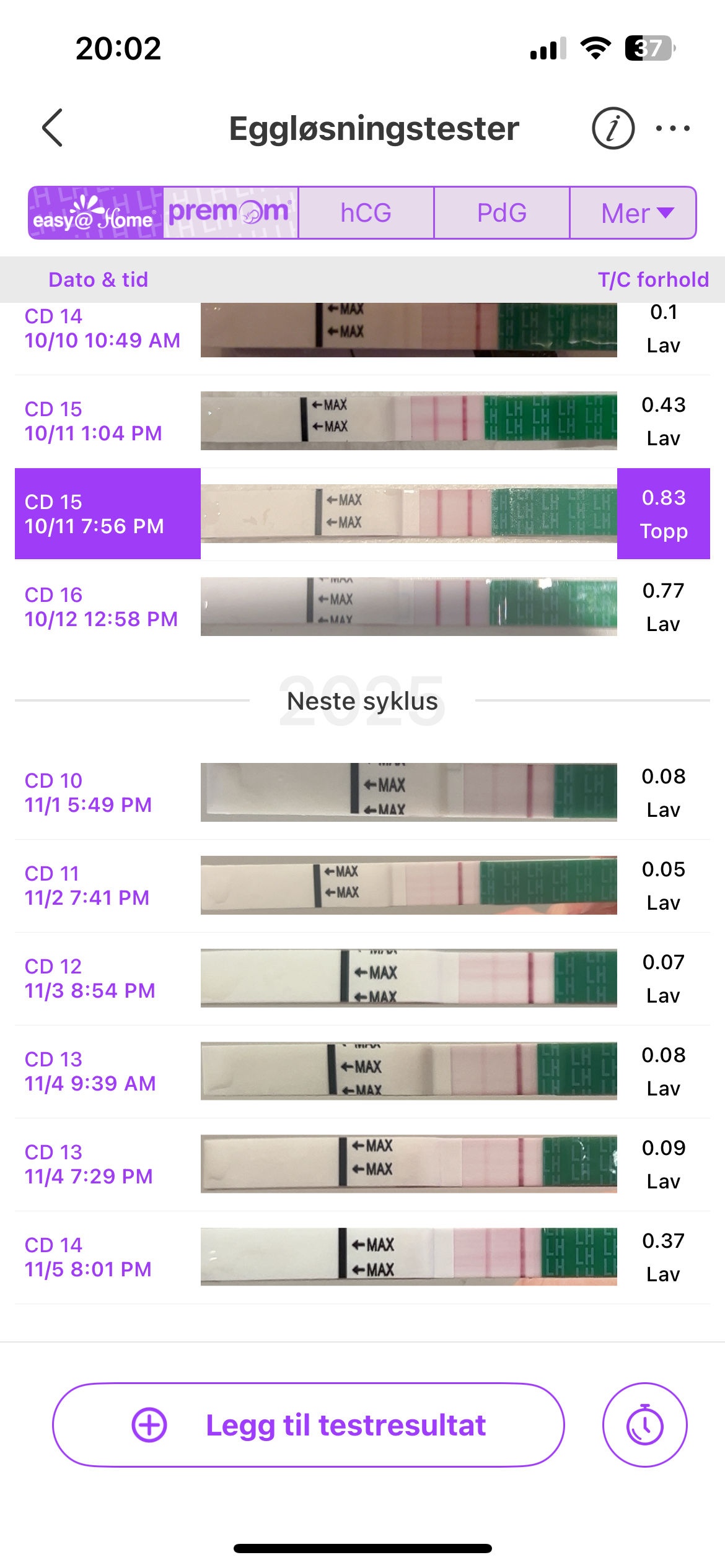 Tar nok en til etter jobb og en ikveld, og blir det peak i dag tar jeg noen for dag til jeg ser de blir svakere! Eller til jeg blir fri for testerSer ut som den snart peaker jahvor ofte skal du teste videre?