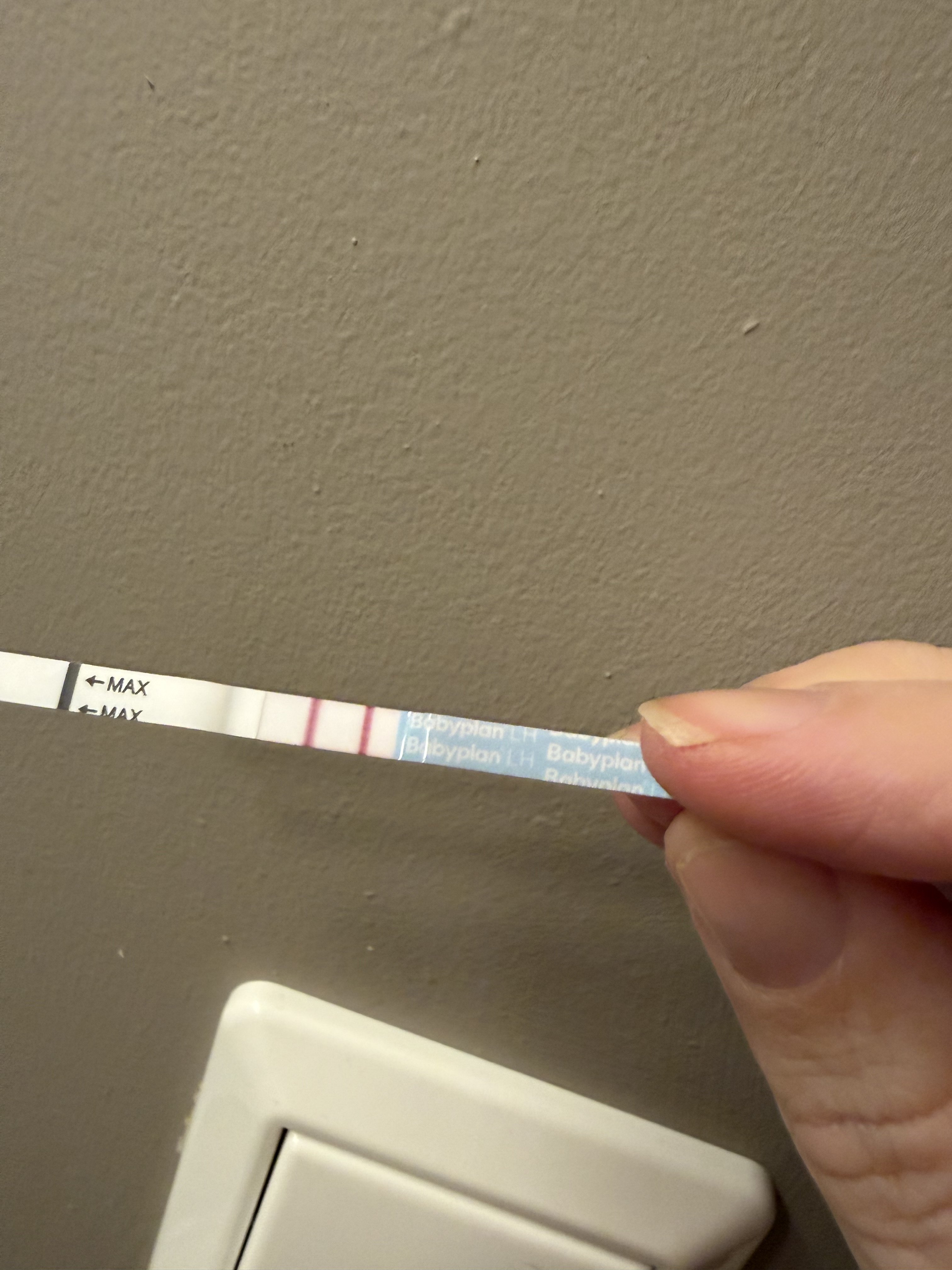 Hurra for eggløsning!Nå er det like før, ellerså har toppen vært. Jeg har monitor i tillegg som viste maksimal imorrest, men liker å bruke strimler i tillegg