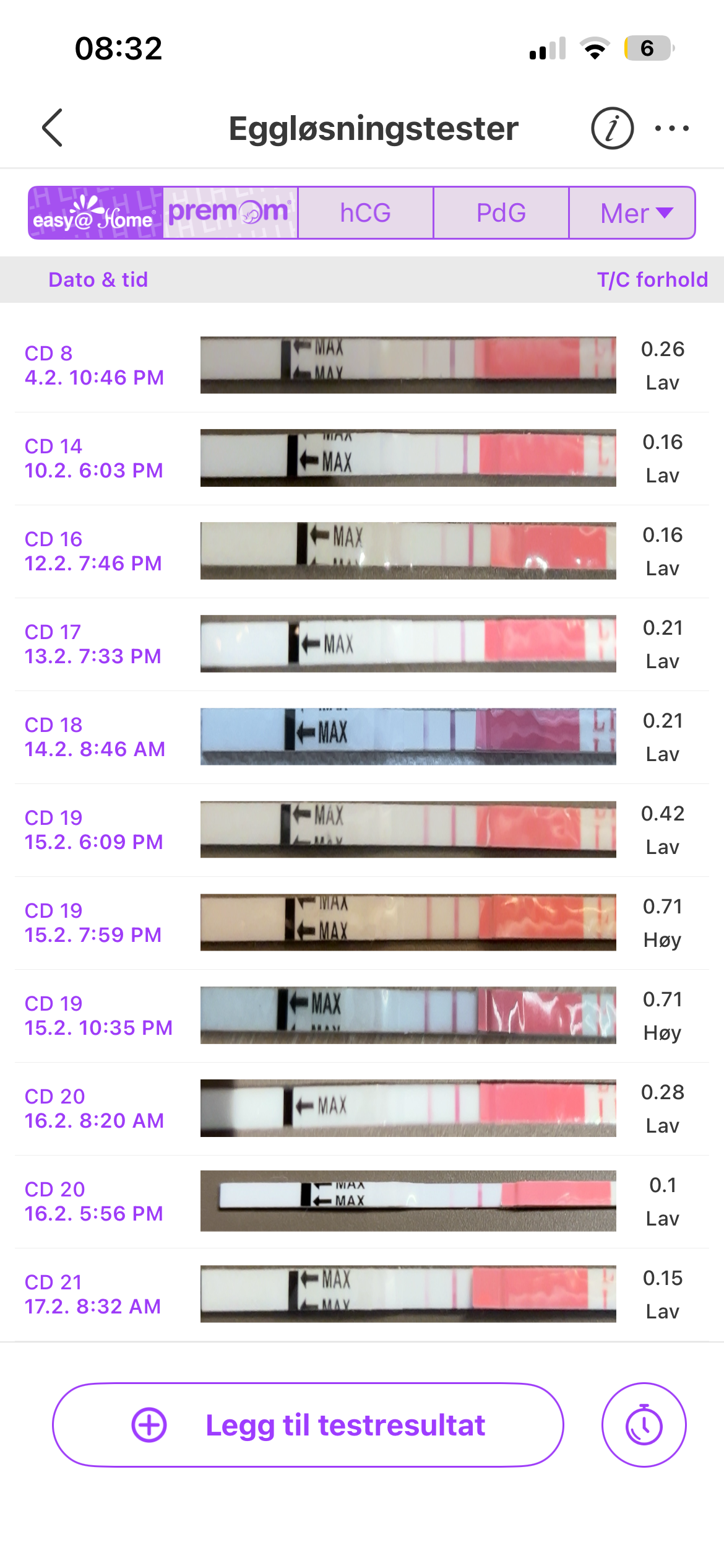 Ja, får kanskje sterke smerter når egget slipper. Pleier å kjenne økt press en stund før det. Det presset kom egentlig ikke helt før nå i kveld. Har lagt mer aksjer tidligere pper, men prøver heller å time mer nå. Samboer la seg tidlig, ellers hadde det kanskje blitt i kveld og, for ble litt lysten :playful: Pleier egentlig å miste lysten og ha mer vondt rundt peak/El.