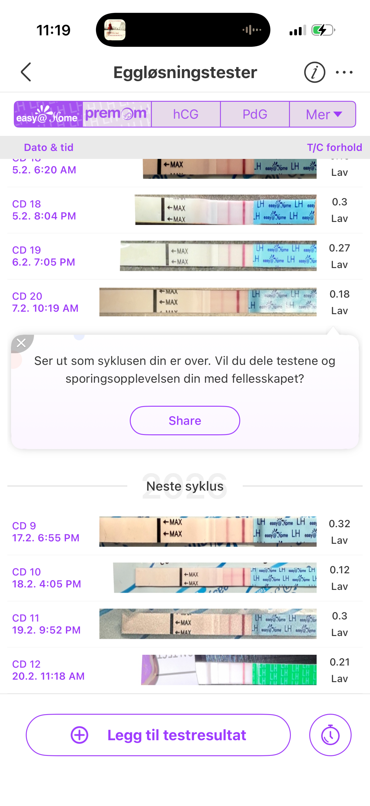 LH viste peak, men er ikke temp. Hadde eggløsningssmerter, men ikke helt sikker på EL. Nå har tempen oppført seg mer som normalt :happy: