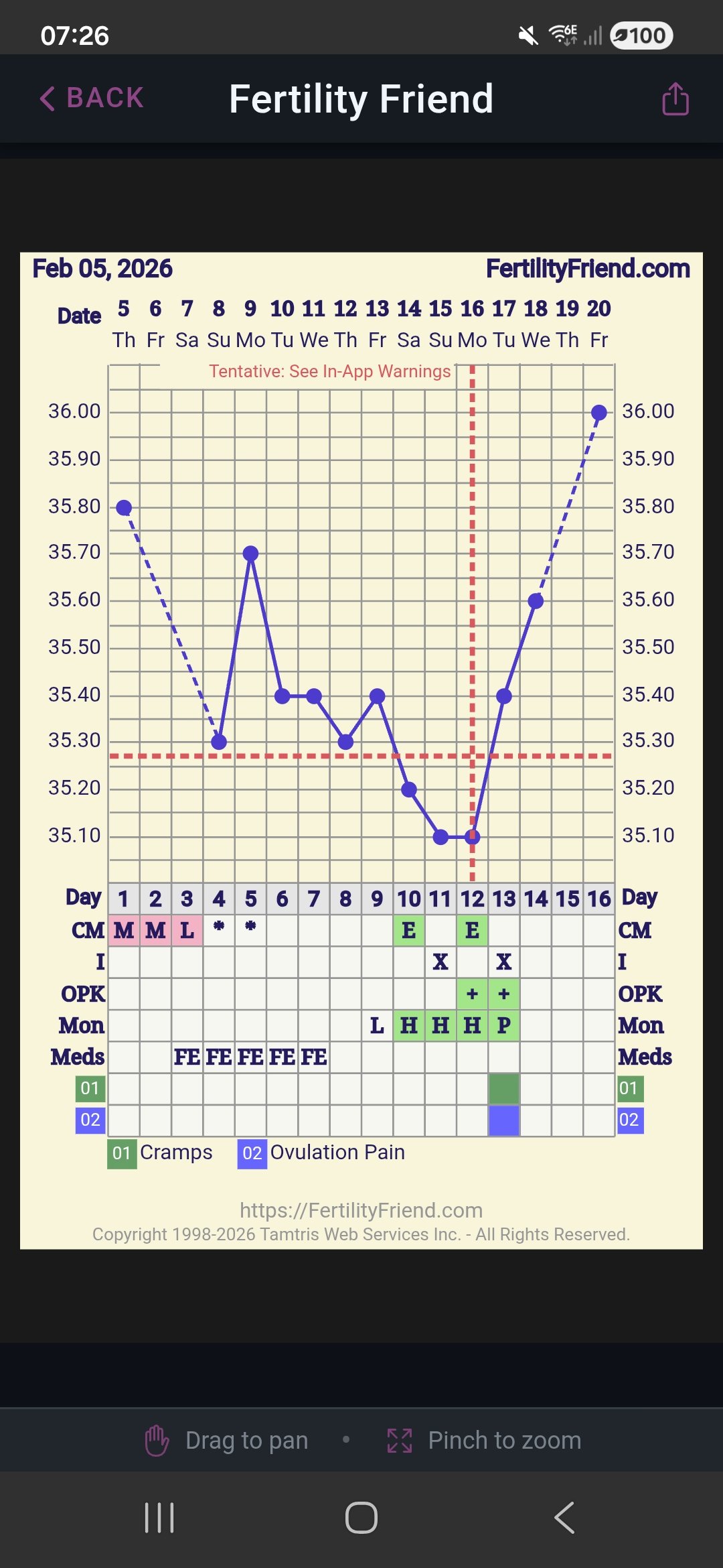 Temp økning to dager på rad, og inne i de treigeste dagene. Testet positivt 8 dpo sist, så da begynner jeg nok å teste på mandag, eller kanskje før :hilarious: