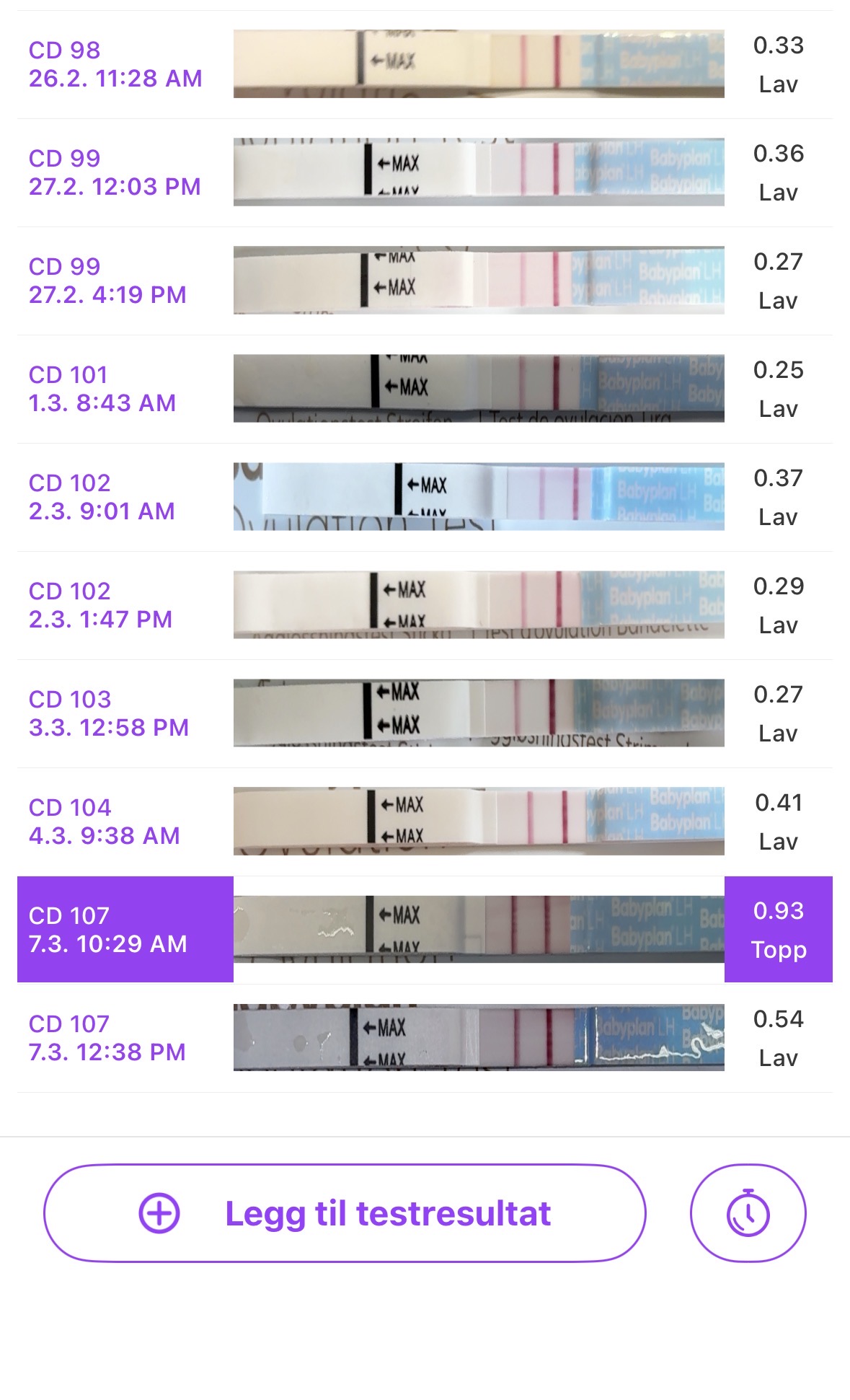 Men dine blir jo bare sterkere og tydeligere? Ikke opp og ned? Jeg ville jo tenkt at du har hatt økning men at det har endt i kjemisk? Og du hadde denne halen til 14DPO? 16 dager etter at du satt sprøyten?