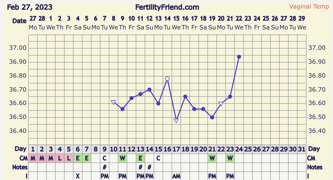 Veldig lettet over å endelig fått svar på hva kroppen har prøvd å fortelle meg! Begynner å se en sammenheng også da jeg forrige syklus hadde kortvarig 38 i feber cd 23 og det hadde jeg i går også på cd23.