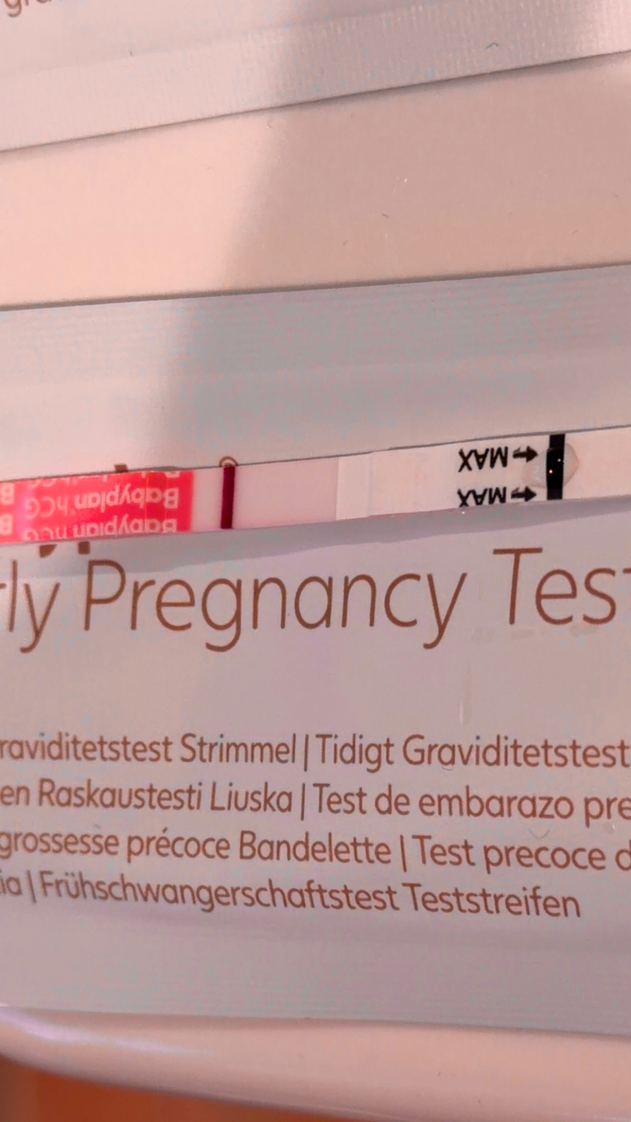 Måtte bare ta en test i dag, har kjøpt ei pakke med makesure. Kom en tydelig og rosa strek, den holdt seg ganske lenge, til det hadde gått over 1.5 min. Fikk jo såklart forhåpninger da! Gikk for å ordne noe og kom tilbake når testen har ligget i 3 min. Da var streken borte, så kjedelig :arghh: