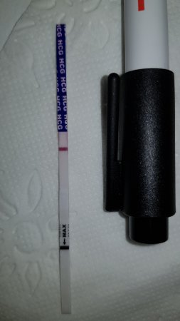 Ca 9-10 dpo, ble visst brått tom for tidlig g test så i dag ble det vanlig :rolleyes: Bildet er tatt innen tidsfrist! Har bare 3 slike tester igjen å en CB digital, er veeldig luren på om jeg skal på apoteket igjen å kjøpe flere tidlig tester, haha! :woot: