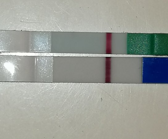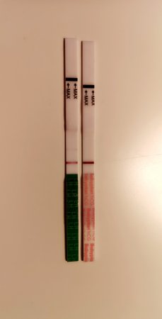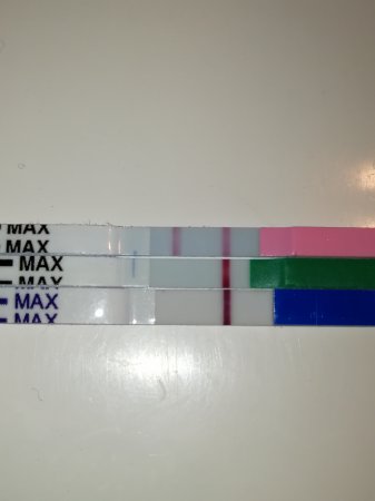 I går kveld, til sammenligning, var den grønne G-testen helt blank, men El testen var positiv. I dag er EL testen ikke like sterk, men ser en skygge på g-test!? Merkelige greier (hormoner). Fikk I tillegg en temp dip i dag. Håper det er et godt tegn for bruker ikke ha det før ikm...Her er testene fra i går kveld og charten.