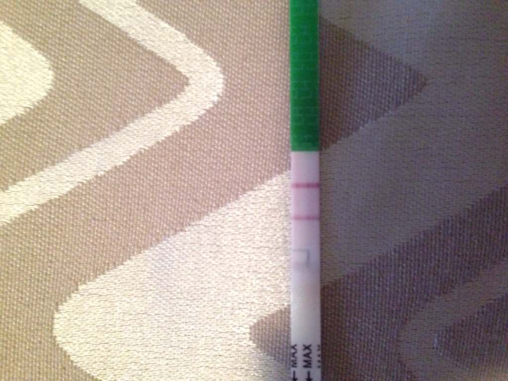 Jeg ville sagt den var negativ, siden teststreken er en ørliten nyanse svakere enn kontrollstreken.