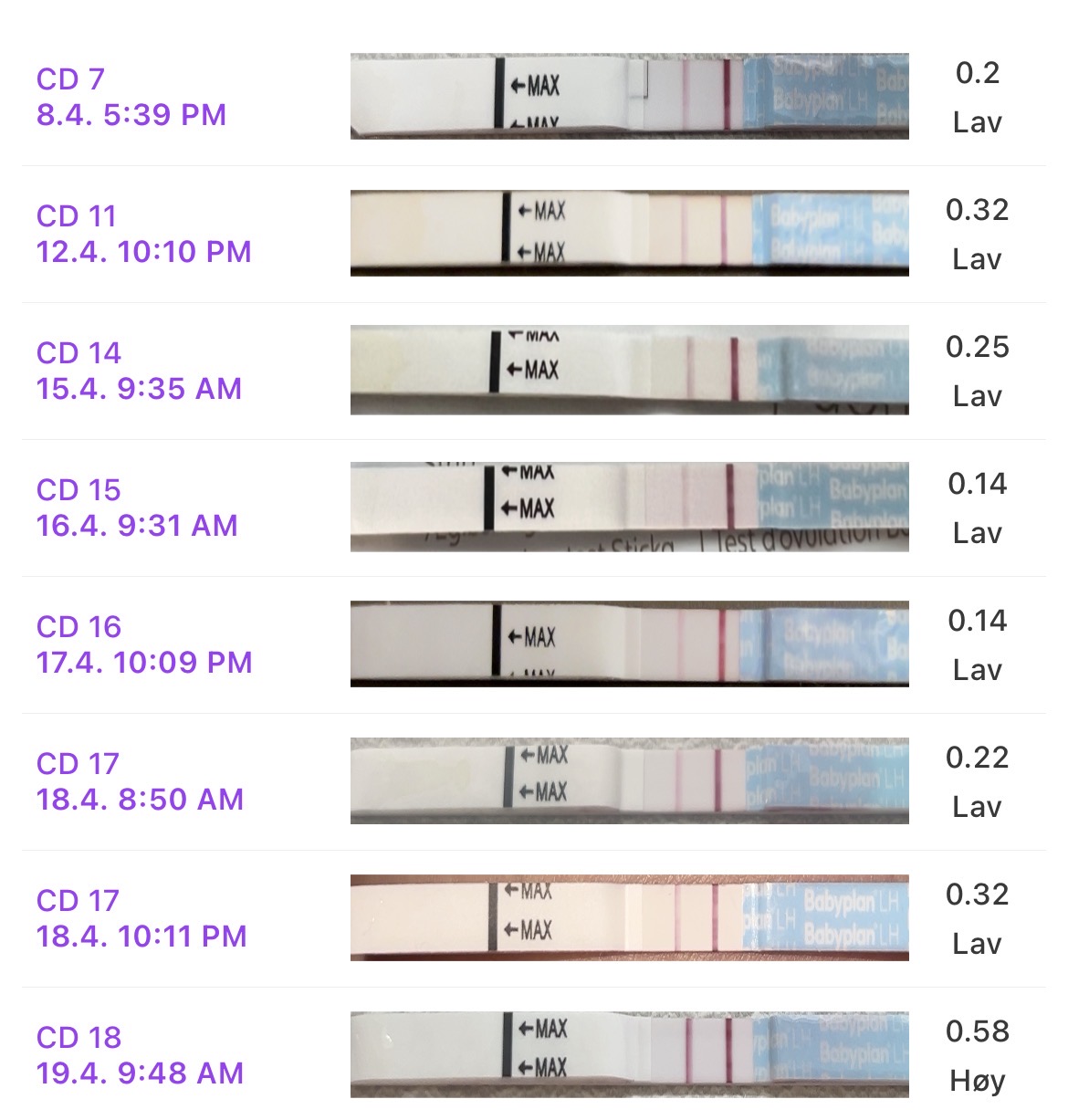 Den sårt etterlengtede positive LH testen kom endelig i dag tidlig og i dag har jeg hatt en del stikkninger i høyre eggstokk og murringer i korsryggen - rart hvor glad man plutselig blir i litt vondter